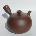 四日市萬古焼の伝統工芸士、伊藤実山作の急須です。実山の急須は土と手仕事の温もりを感じられる独特の光沢を放っています。陶土を主成分とし内面に釉薬を使用していない萬古焼急須は陶器・磁器のどちらでもなく「陶土器」になります。陶土器急須は土含まれる鉄分と茶葉の相性がいいので渋みを取りまろやかな味わいになることが特徴です。茶漉しはステンレス製ではなく一個一個手作業で開ける伝統技法「共茶漉し」が使用されています。透かし彫の技術を流用した実山本人による茶漉しの穴あけは細かな茶葉も濾せる精巧な茶漉しになっています。ステンレス製の茶漉しと比べて茶渋の付着による目詰まりも起こりにくく長く愛用いただけます。