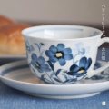 一面に咲く商品の名前の通り、カップとソーサーに活き活きと咲く花の絵付けが特徴的な宮吉さんの器。西洋と東洋の調和が不思議と私達の生活に馴染みます。