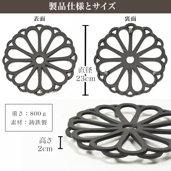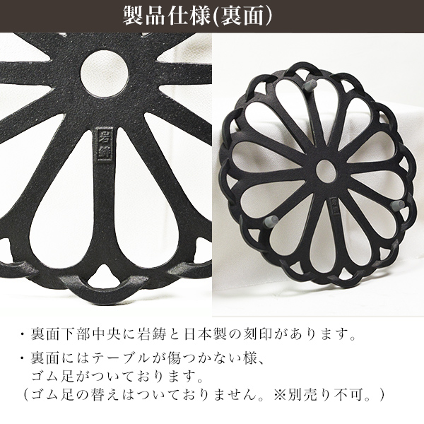 【南部鉄器 岩鋳】 釜敷 輪菊 黒 大