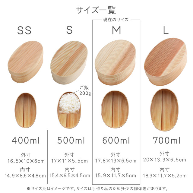 ・600mlサイズ・・・表記以上に沢山入る。男性・中高生、しっかり食べたい女性にも。