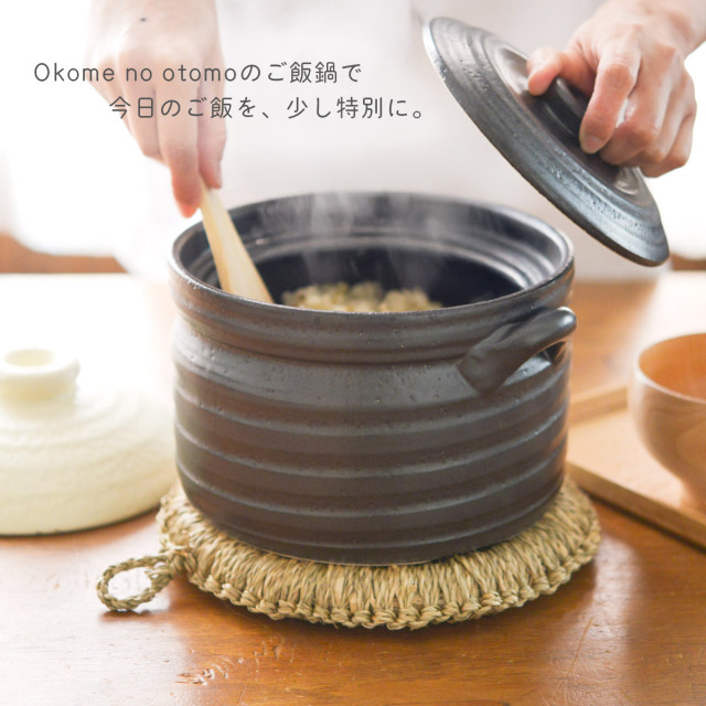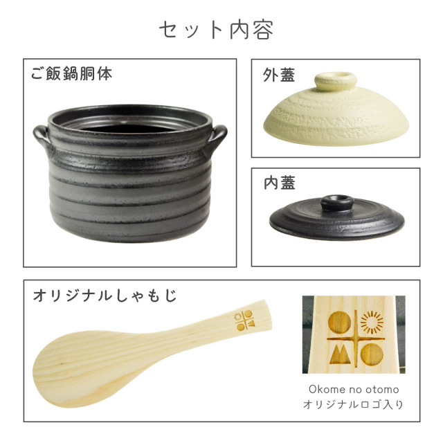 【Okome no otomo】 Okome no otomo IH対応ご飯鍋 二重蓋 3合炊き オリジナルしゃもじ付き