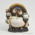 縁起物として喜ばれる信楽焼のたぬき。にくめないこの姿かたちは「八相縁起」と呼ばれる縁起を表しています。さらに人や幸せをむかえる、無事に帰る等で縁起が良いとされる蛙を持っているため、商売繁盛を願う、開店祝いの贈り物やお土産に喜ばれる工芸品です。