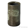 【信楽焼】 花瓶 緑釉白刷毛 筒