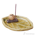 【信楽焼】 香皿 ふくろう 緑葉 丸