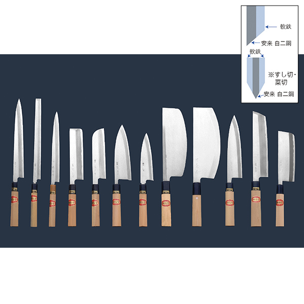 - 刃:安来白鋼、柄:水牛口輪木柄