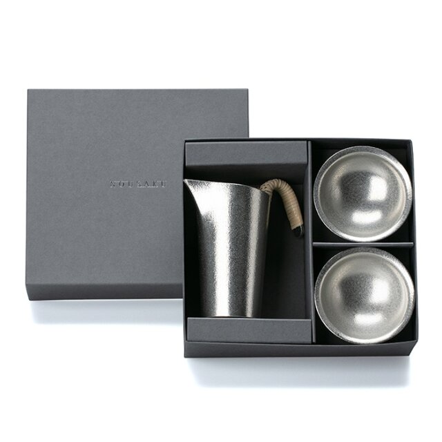 錫器は古くから錆びにくく、朽ちにくいため縁起がよいとされ、繁栄を願う贈答品として親しまれてきました。また、熱伝導率が高いため器を冷蔵庫に1-4分入れることで器全体が程よく冷え、冷酒が一層美味しくお楽しみいただけます。