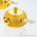 茶道具として、欠かすことのできない急須。世界的にも有名で、憧れの茶道具の一つといえます。見るからに堂々とした作りで、一瞬で目が釘付けにされます。細部にいたるまでの精巧な作りはもちろん、純金製の溢れるような本物の輝きをご堪能ください。