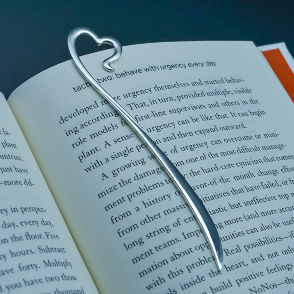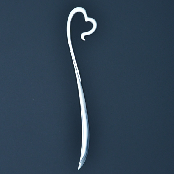 ハート型の銀製ブックマーカーは小さいながらも贅沢感のある一品です。銀素材の美しい質感と洗練されたシンプルなデザインで飽きのこない卓上アイテムです。上質感あふれる大人のデスクを演出します。