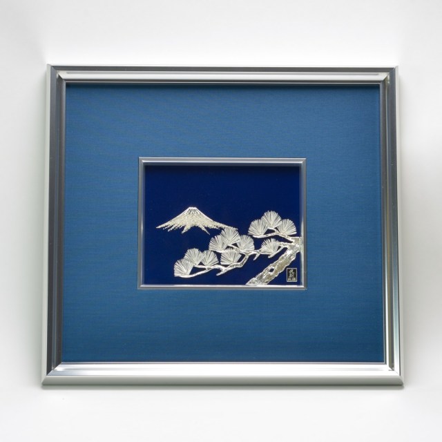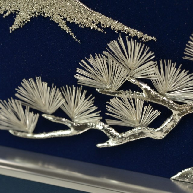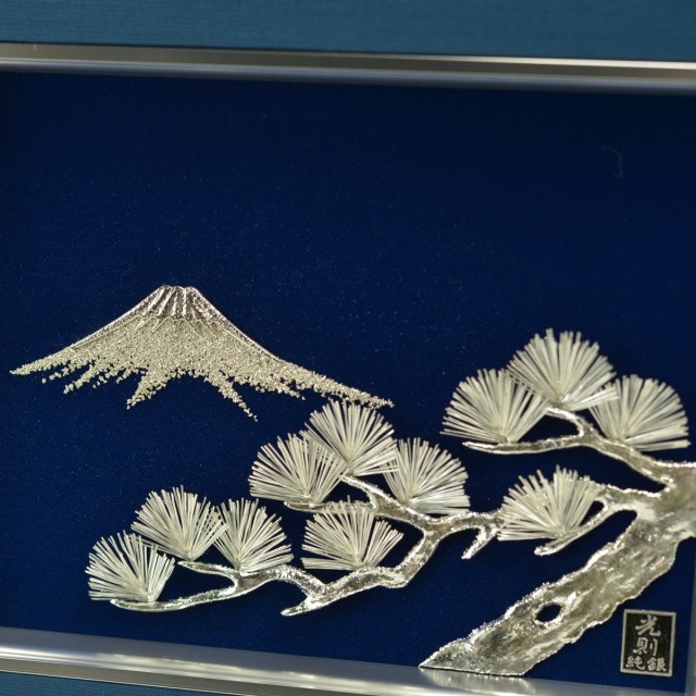 おめでたい「富士」と「松」をモチーフにした銀工芸です。