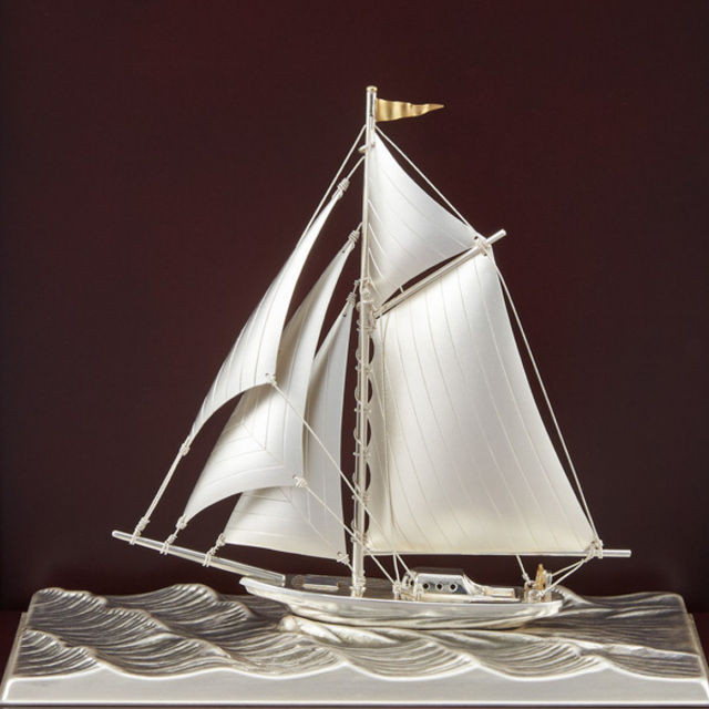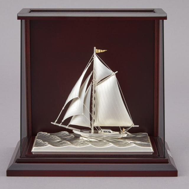 【東京銀器(銀工芸)】 銀製 ヨット 1本マスト スロープケース B