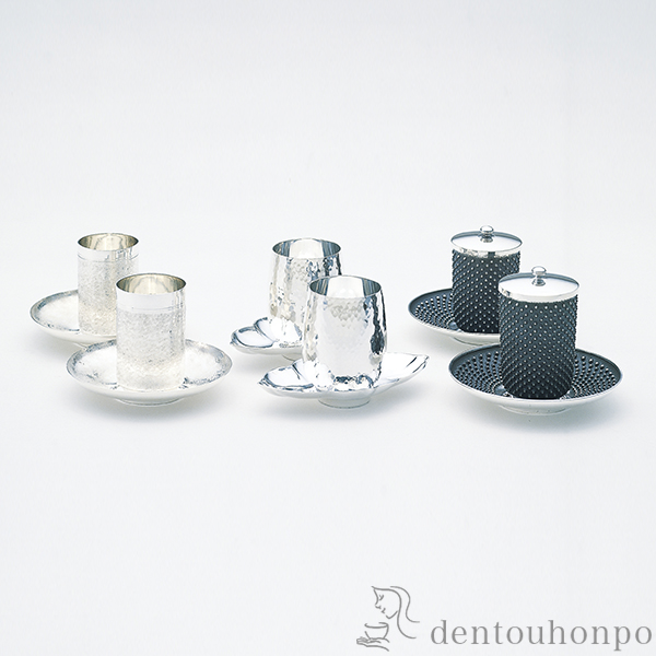 【東京銀器(銀工芸)】 銀製 湯呑 霞 茶托付 小