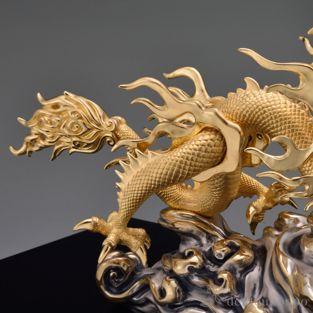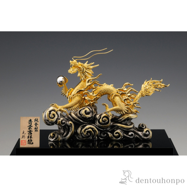 【東京銀器(金工芸)】 純金 青雲吉祥龍 B 400g