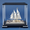 洗練された輝きを放つ銀製のヨット置物。優雅な曲線と重厚感が空間に高級感を添え、成功や前進の象徴として、昇進祝いや業務提携・契約締結など新たなパートナーシップを祝う贈り物・記念品などに最適です。