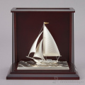 洗練された輝きを放つ銀製のヨット置物。優雅な曲線と重厚感が空間に高級感を添え、成功や前進の象徴として、昇進祝いや業務提携・契約締結など新たなパートナーシップを祝う贈り物・記念品などに最適です。