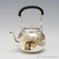 【東京銀器(銀工芸)】 純銀 急須 松竹梅 3.3号 R型 340g つる付