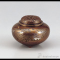 【高岡銅器】平型楼閣山水香炉 山吹色