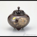 【高岡銅器】平丸香炉 牡丹