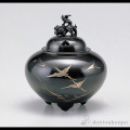 【高岡銅器】平丸獅子蓋香炉 鶴