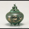 【高岡銅器】平丸獅子蓋香炉 松鶴