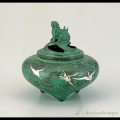 高岡銅器特有の重厚感のある色付けをした後、伝統工芸士の彫金師がすべて手彫りで香炉本体に彫金を施します。金や銀の色合いは、彫金師の感性を存分に表現してあり、見事な仕上がりです。お使いいただく場面に合わせて、お楽しみいただけます。