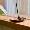 高岡銅器の銅製の香立て。はっぱにのったカエルがお香を支えてくれる面白いデザイン。香立てとしてだけでなくオブジェやちょっとしたインテリアとしても楽しんでいただけます。