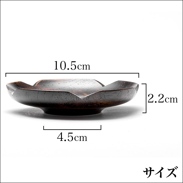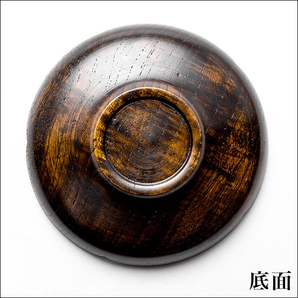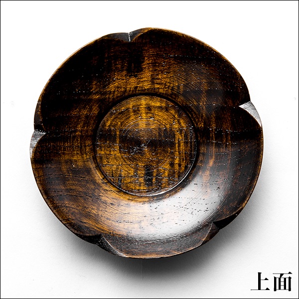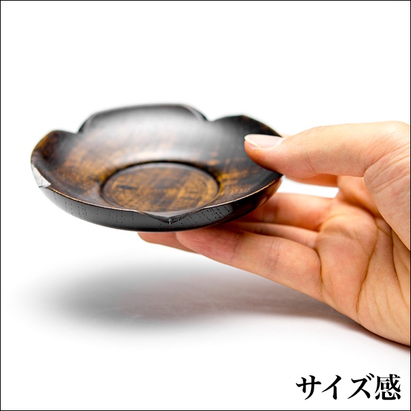 日本一の生産量を誇る山中漆器の茶托です。ふちは梅の花の形になるように切り込みが入っており、日本ならではの風情を感じさせてくれます。また、深い飴色の木目と厚みのある木地は温かみがあり、手づくりの湯呑との相性は抜群です。