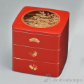 【山中漆器】都三段重 松竹梅 赤 5寸