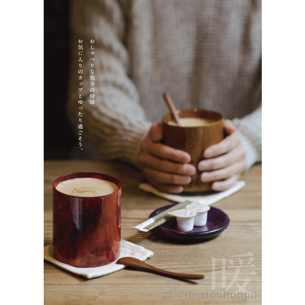 木製で、軽量。温かい飲み物を入れても熱くなりにくいカップです。木の優しい温もりの質感で、カラーバリエーションも豊富です。割れないのでキャンプやアウトドアのもお勧めです。