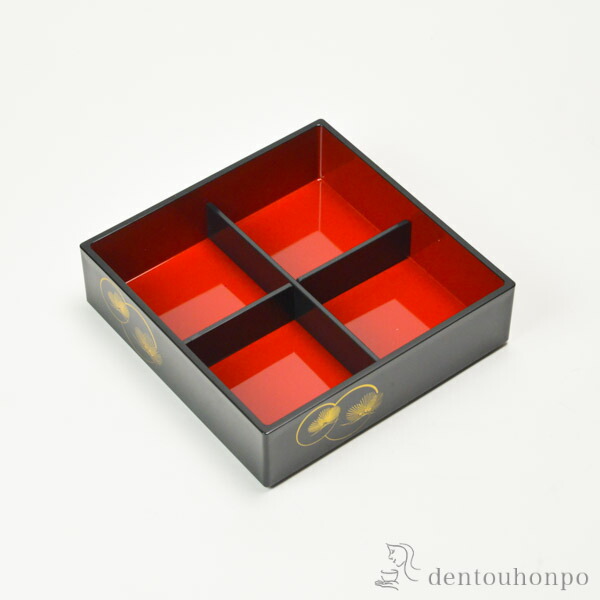 【山中漆器】 重箱用仕切り十字 4分割 黒 重箱6.5寸(内寸18.5cm)対応
