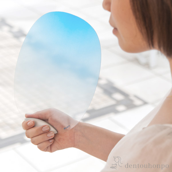 デスクなどの空いたスペースにすっきりと自立する身近なうちわ。バッグに入れて持ち歩くのも便利です。